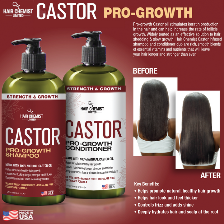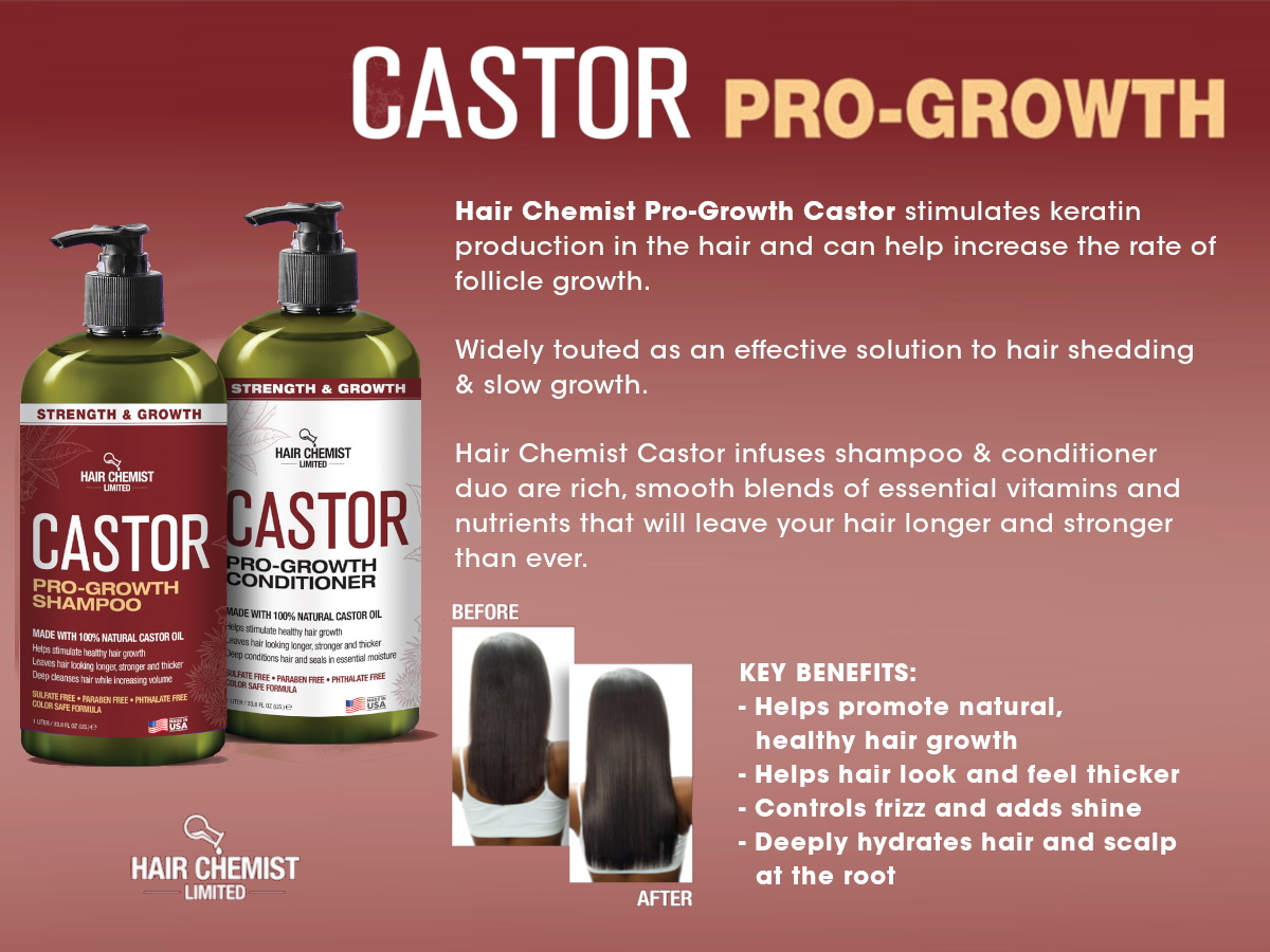 For best results, use after shampooing with Hair Chemist Castor Pro-Growth Shampoo. After shampooing, squeeze out excess water and apply Scalp Stimulating Castor Conditioner. Gently work in and rinse thoroughly.