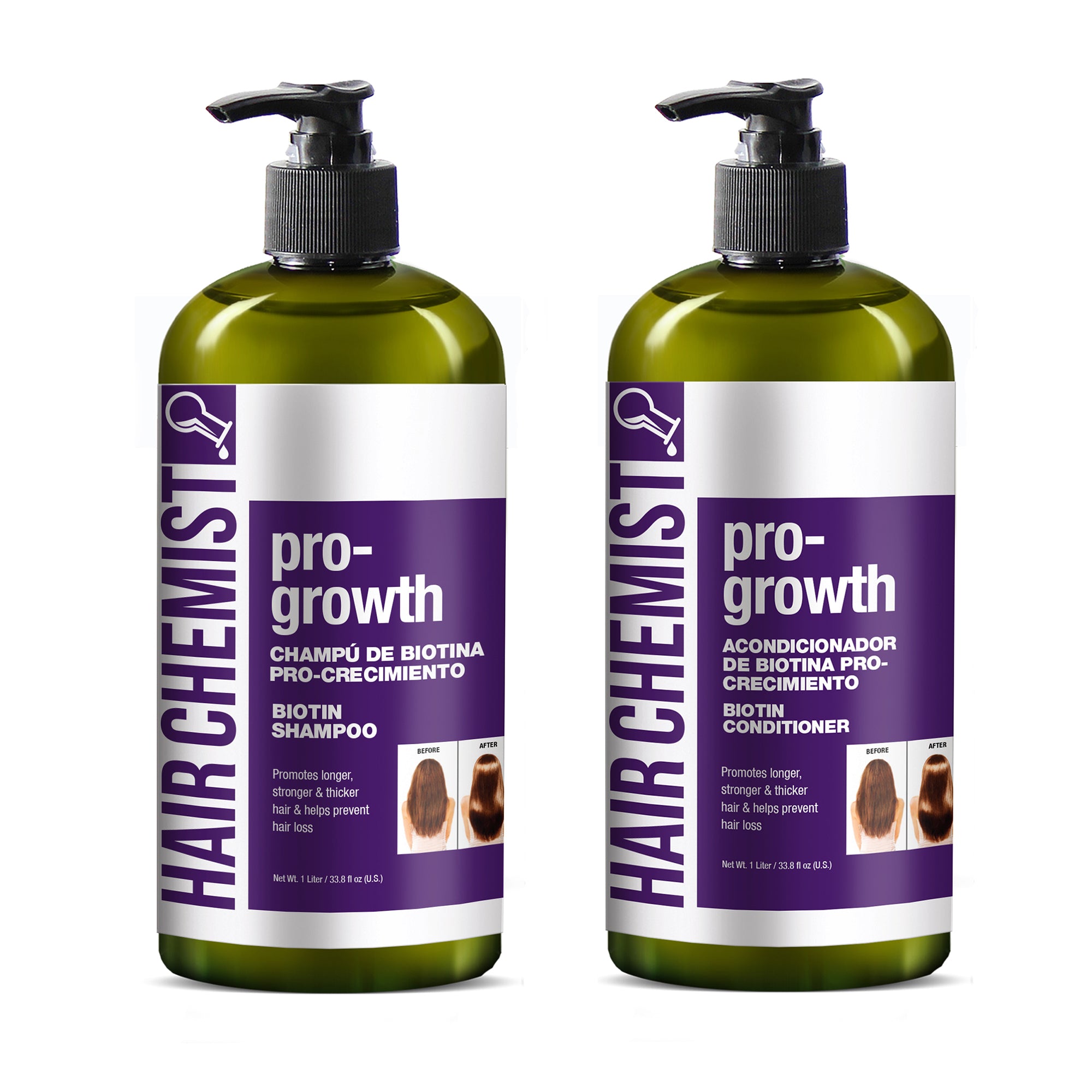 Hair Chemist Pro-Growth Shampoo & Conditioner Set with Biotin - Includes 33.8oz Shampoo & 33.8oz Conditioner
