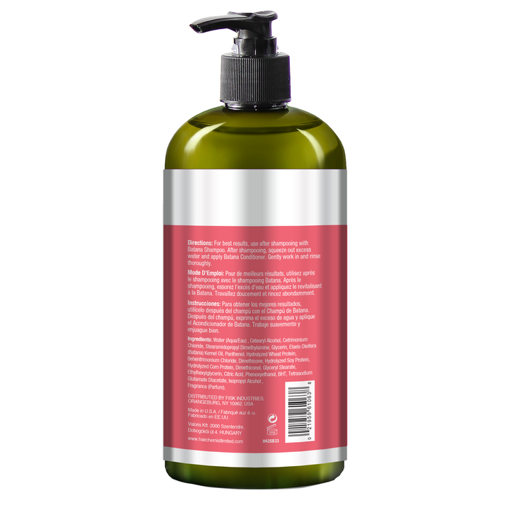 Water (Aqua/Eau) , Cetearyl Alcohol, Cetrimonium Chloride, Stearamidopropyl Dimethylamine, Glycerin, Elaeis Oleifera (Batana) Kernel Oil, Panthenol, Hydrolyzed Wheat Protein, Behentrimonium Chloride, Dimethicone, Hydrolyzed Soy Protein, Hydrolyzed Corn Protein, Dimethiconol, Glyceryl Stearate, Ethylhexyglycerin, Citric Acid, Phenoxyethanol, BHT, Tetrasodium Glutamate Diacetate, Isopropyl Alcohol, Fragrance (Parfum).